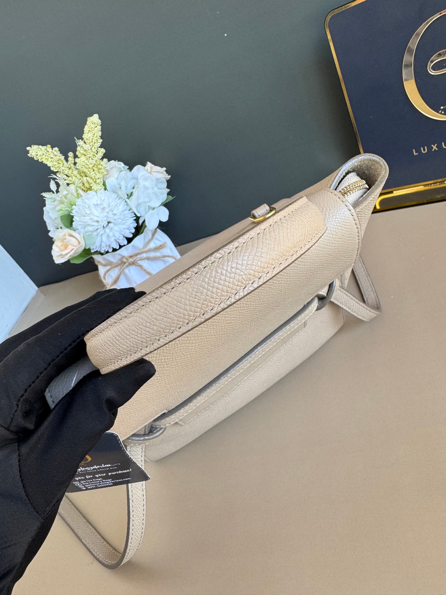 L. BEIGE, GRAINED LEATHER, GHW
